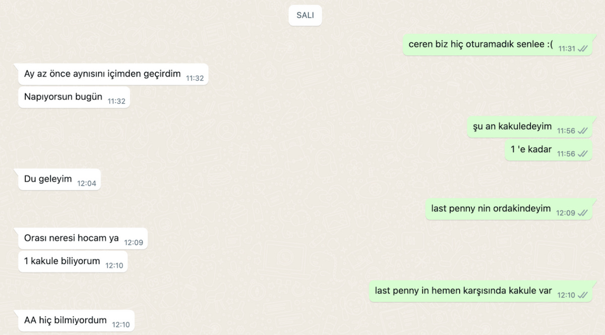 Ben bu yazıda, benim müdavimi olduğum ve gitmekten çok keyif alınan birkaç mekândan bahsetmek istedim. Bu mekânlara yolunuz düşmese bile, masalarında oturan insanların hararetle yerel seçimleri tartıştığını, festivalde kaç film izlediğini, kimin konserini beklediğini duyabilirsiniz..
