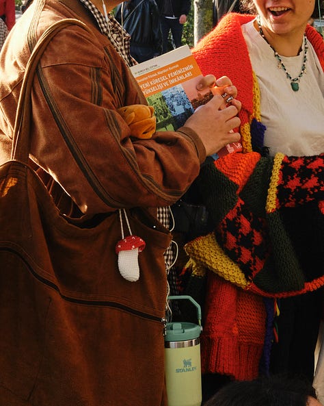 Ben, görev bilinciyle etkinlik alanına planlanan saatten yaklaşık bir saat önce gittim. Açıkçası, sosyal medyada başlayan ironik bir “meme”in bu denli büyük bir karşılık bulmasını hiç beklemiyordum. Ama saat yaklaştıkça yanılmaya başladığımı fark ettim. Tote bag’leri omuzlarında, Stanley termoslarını kemerlerine asmış, oversize gömlekli ve ellerinde kitaplarını tutan gençleri gördüğümde, bu durumun sadece bir şaka olmadığını anladım.