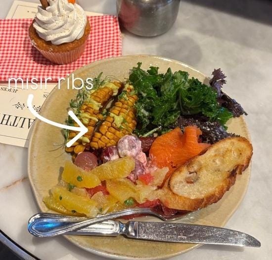 🍽️ Cody Mehmet, büfeye bakıyor, büfe ona. Tabağına nelerden koysa acaba… 🌽 Ayşe, Corn Ribs üzerinden neden zor şeyleri sevdiğimizi sorguluyor. 🫐 Gözde, böğürtlenli ekmeği seçiyor ve tatlısıyla tuzlusuyla 20’lik olmaktan bahsediyor. 🥣 Zeynep, spirulina bowla tedbirle yaklaşıyor. Peki sonra düşünceleri? Okursunuz yazısında artık. Keyifli okumalar!