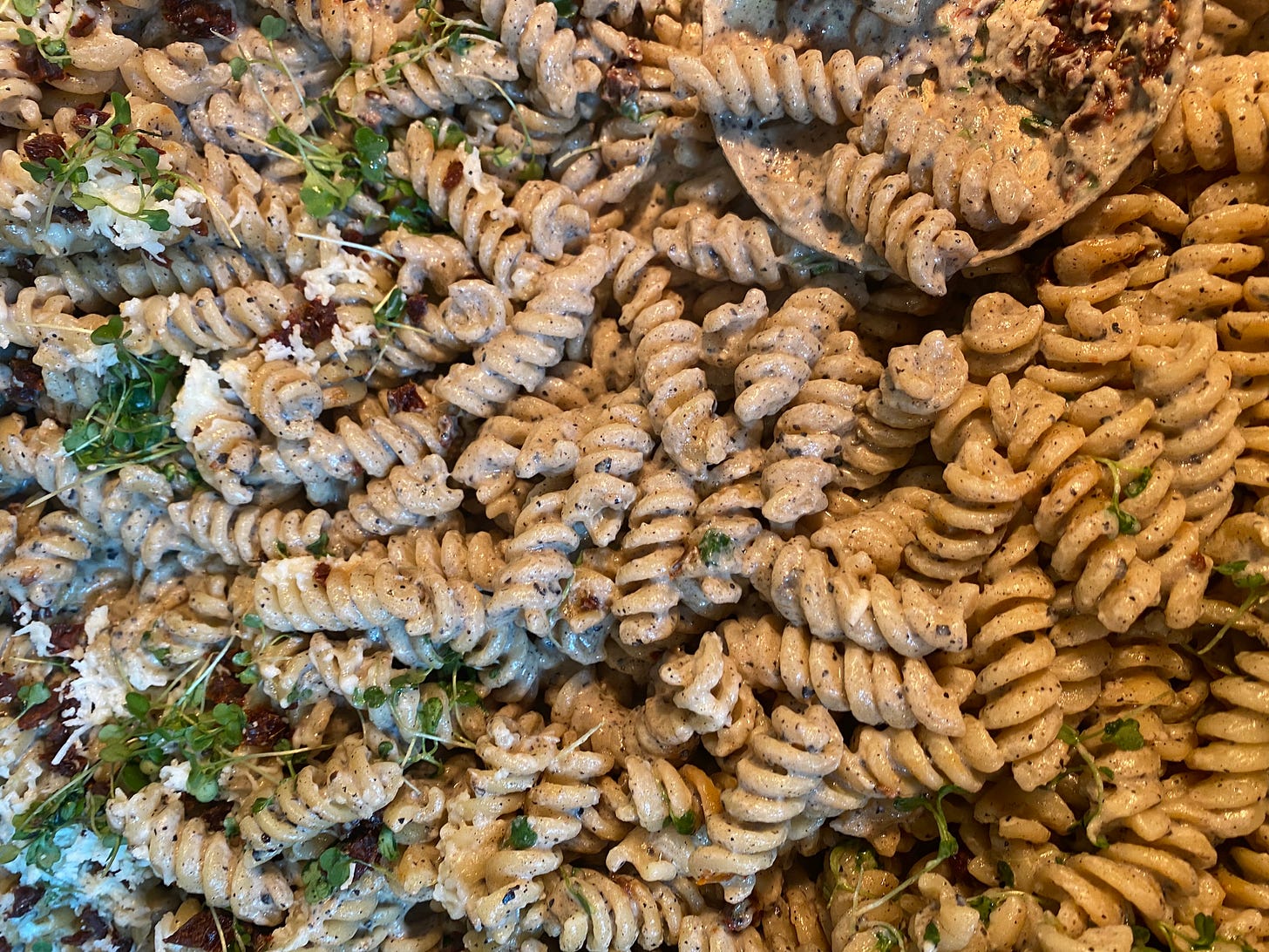 Bu makarnanın özellikle domatesli bir sosu kıvrımları arasında inanılmaz tuttuğunu ve bol parmesanla dünyanın en huzur verici yemeklerinden biri olduğuna inanıyorum. (Bu arada reklam değil demek komik olacak ama Beca’daki fusulli alla vodka çok lezzetli).