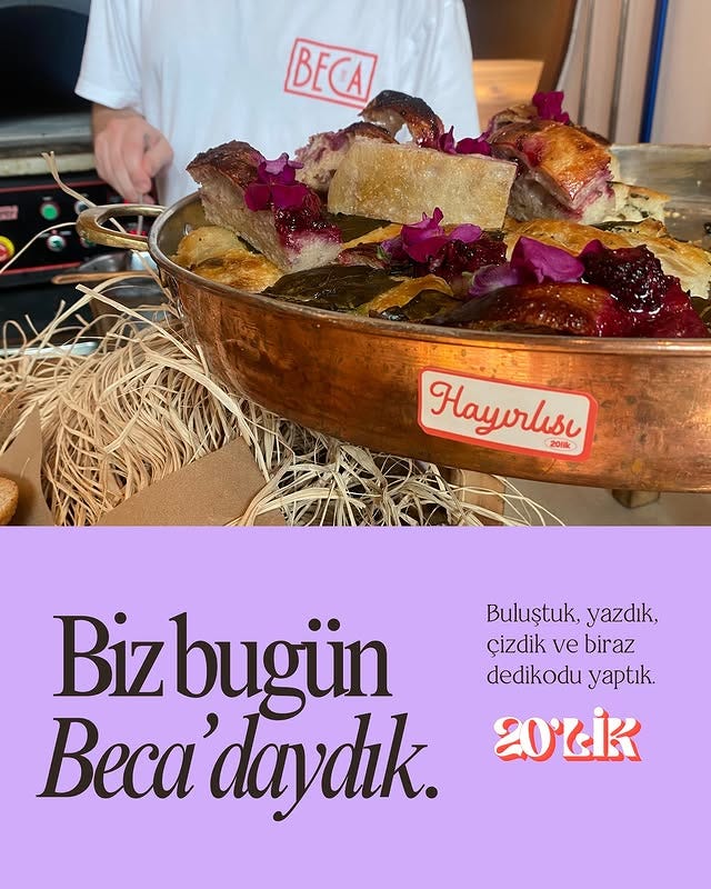 29 Ekim. Cumhuriyetimizin 102. yılı ve biz 20’lik ekibi olarak Beca’dayız. Sevgili editörümüz Yasmin’in paylaştığı yemek story’lerine ağzım sulanarak Kadıköy’den Etiler’e geliyorum ve kendimi şahane atıştırmalıklarla dolu bir salonda buluyorum.